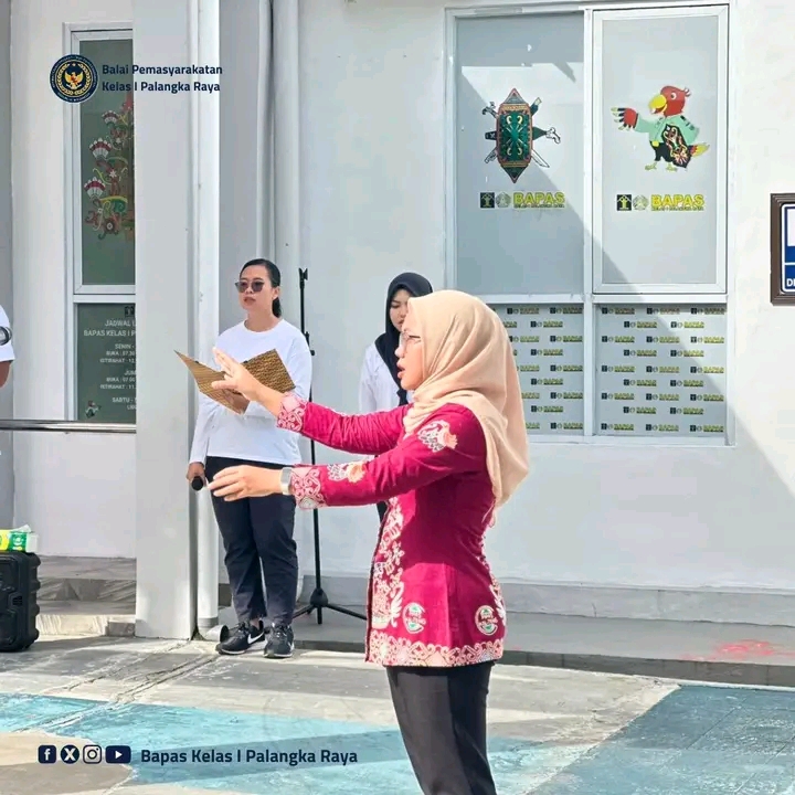 TIMELINES INEWS INVESTIGASI, Palangka Raya Balai Pemasyarakatan (Bapas) Kelas I Palangka Raya melaksanakan apel pagi pada akhir pekan menjelang libur panjang, Jumat (5/9/2025). Seluruh jajaran pegawai mengikuti kegiatan ini dengan penuh semangat, meski suasana liburan sudah mulai terasa.