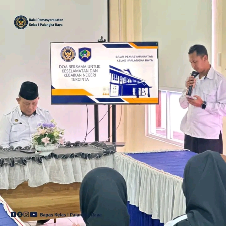 TIMELINES INEWS INVESTIGASI, Palangka Raya Balai Pemasyarakatan (Bapas) Kelas I Palangka Raya menggelar kegiatan doa bersama untuk keselamatan dan kebaikan negeri tercinta, Senin (01/09/2025). Kegiatan yang dilaksanakan di Aula Bapas Palangka Raya ini diikuti oleh seluruh jajaran pegawai dengan penuh khidmat.