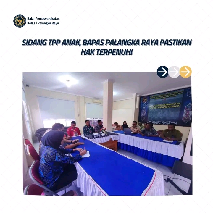 Tim Pengamat Pemasyarakatan (TPP) Balai Pemasyarakatan (Bapas) Kelas I Palangka Raya melaksanakan sidang TPP untuk membahas hasil penelitian kemasyarakatan (litmas) pendampingan Anak yang Berkonflik dengan Hukum (ABH). Sidang digelar di Aula Bapas Palangka Raya pada Kamis (25/09/2025).