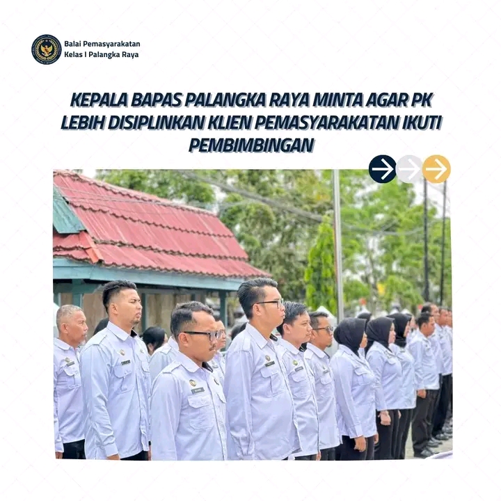 Kegiatan tersebut dipimpin langsung oleh Kepala Bapas Kelas I Palangka Raya, Theo Adrianus, yang dalam arahannya menegaskan pentingnya kepatuhan klien pemasyarakatan dalam menjalani pembimbingan.