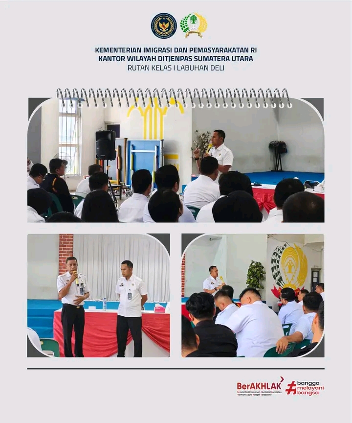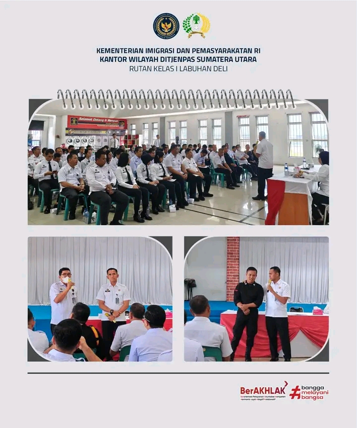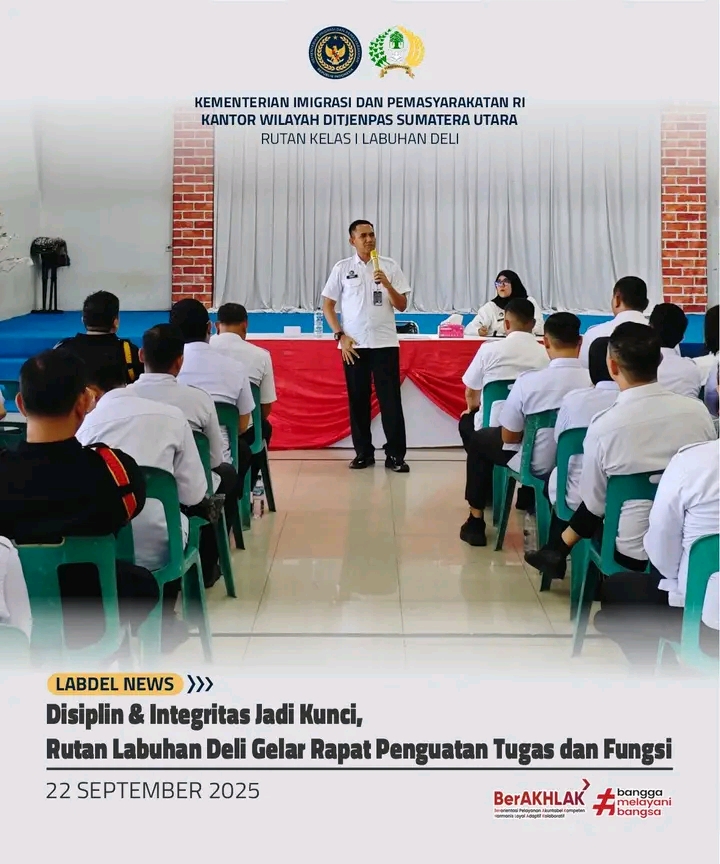 TIMELINES INEWS INVESTIGASI, Labuhan Deli Rumah Tahanan Negara (Rutan) Kelas I Labuhan Deli terus berkomitmen meningkatkan kinerja jajaran pegawai melalui penguatan tugas dan fungsi (tusi). Hal ini diwujudkan dengan pelaksanaan rapat penguatan tusi yang digelar di Aula Lantai 3 Rutan Labuhan Deli pada Senin (22/9/2025).