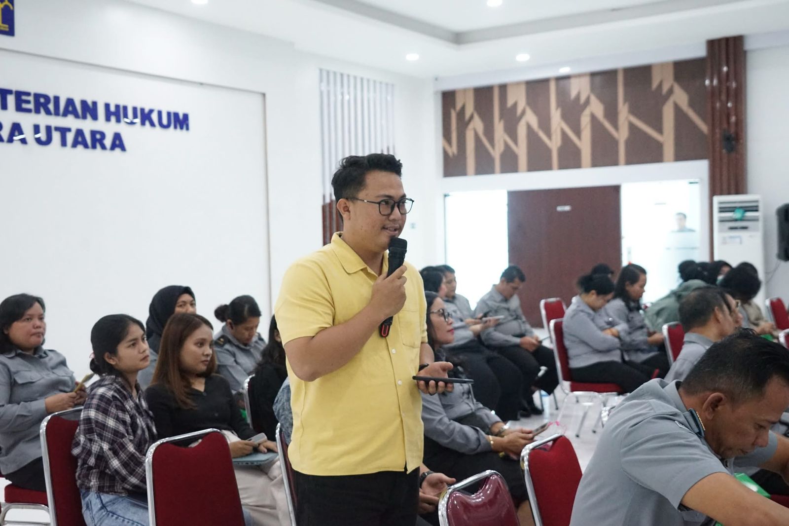 Kegiatan dihadiri oleh Kepala Biro Hukum Provinsi Sumut, Sekretaris DPRD Provinsi, para Kepala Bagian Hukum Kabupaten/Kota se-Sumut, akademisi, pimpinan tinggi pratama Kanwil, hingga mahasiswa fakultas hukum. Kadiv P3H Ferry Ferdiansyah selaku peserta Pelatihan Kepemimpinan Tingkat II Angkatan XIV Tahun 2025 memaparkan materi berjudul “Layanan Digital Pengaduan Masyarakat terhadap Produk Hukum Daerah sebagai Bentuk Monitoring dan Evaluasi (DUMAS PROKUMDA)” yang kemudian dilanjutkan dengan sesi tanya jawab interaktif.