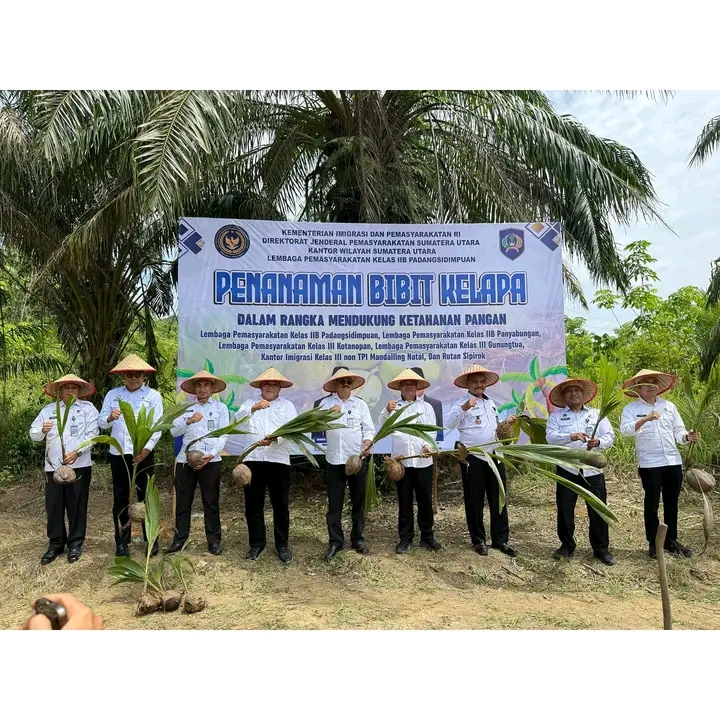 TIMELINES INEWS INVESTIGASI, Padangsidimpuan Lapas Padangsidimpuan Laksanakan penanaman pohon kelapa sebagai wujud nyata mendukung ketahanan pangan sekaligus wujud kepedulian terhadap lingkungan, kegiatan ini berlangsung di Kebun Lapas yang merupakan sarana Asimilasi Lapas Padangsidimpuan, Selasa (09/09/2025)