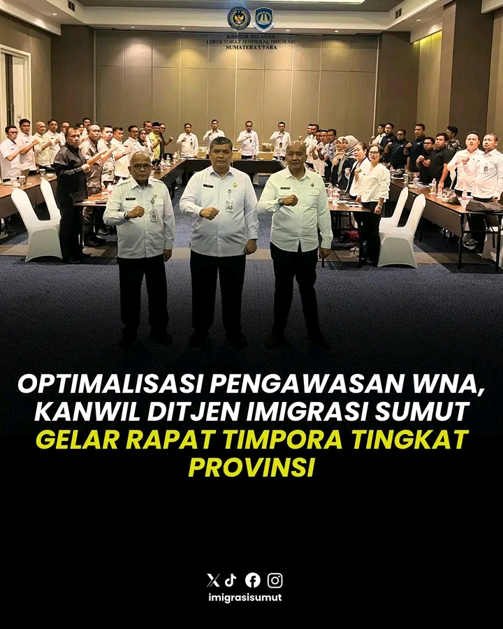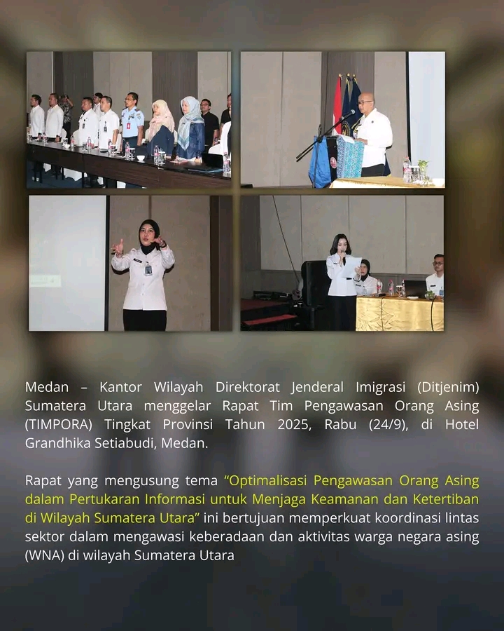 Medan, 24 September 2025 Kantor Wilayah Direktorat Jenderal Imigrasi (Ditjenim) Sumatera Utara menggelar Rapat Tim Pengawasan Orang Asing (TIMPORA) Tingkat Provinsi Tahun 2025 di Hotel Grandhika Setiabudi, Medan, Rabu (24/9).