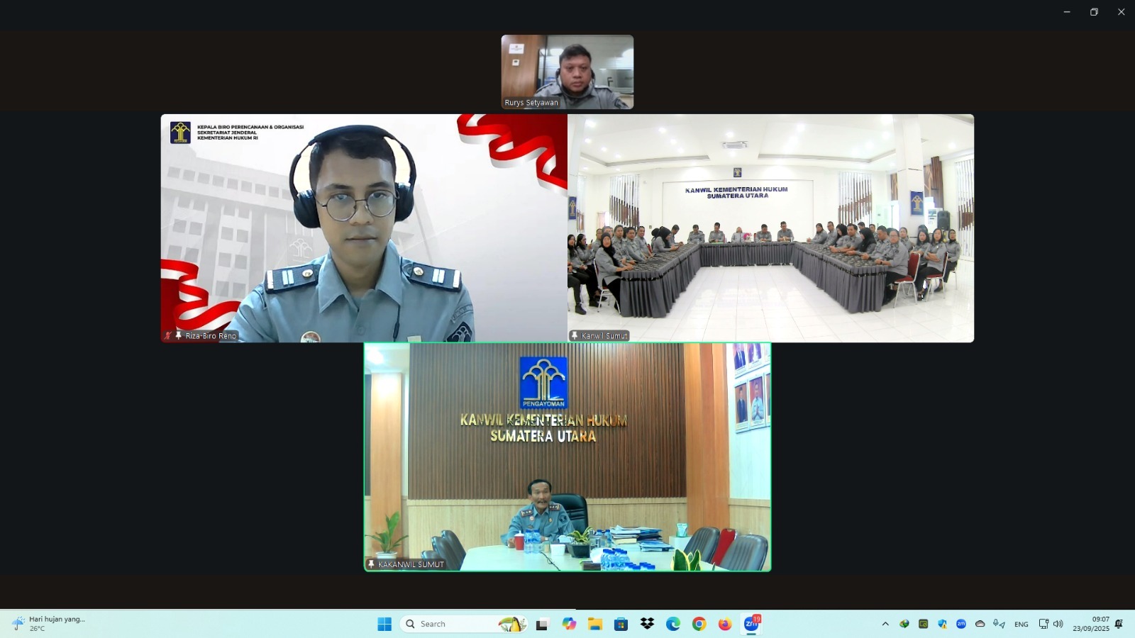 Untuk memperkaya pemahaman dan membuka ruang evaluasi, kegiatan ini menghadirkan dua narasumber dari Biro Perencanaan dan Organisasi Kementerian Hukum RI, yakni Rizal Ramadhan secara daring. Rizal memaparkan kebijakan penyelenggaraan pelayanan publik tahun 2025 serta mengevaluasi implementasi standar layanan yang telah diterapkan di lingkungan Kementerian Hukum Sumatera Utara.