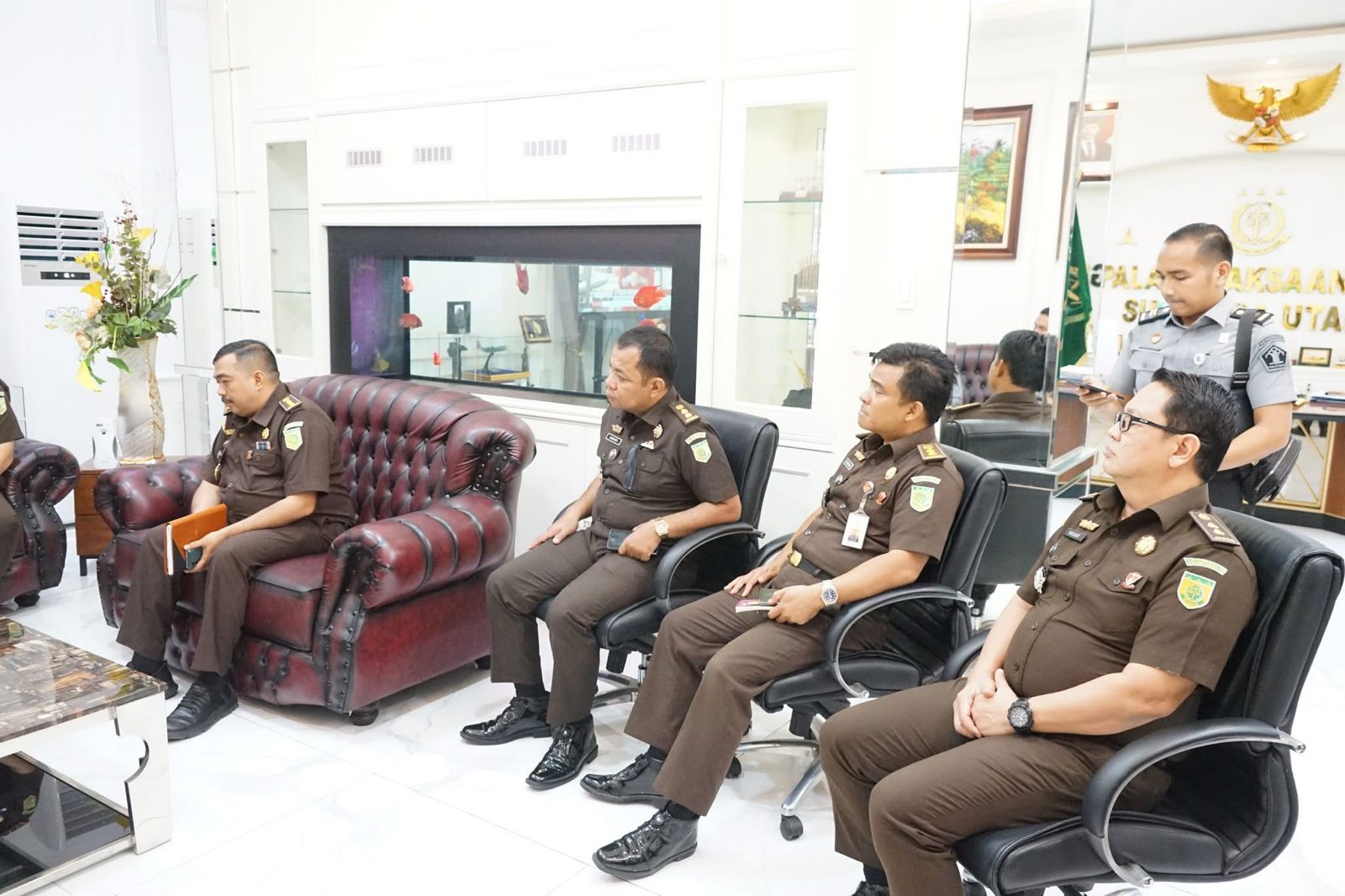 Kedatangan Kakanwil disambut langsung oleh Kepala Kejaksaan Tinggi Sumut, Harli Siregar, beserta jajaran. Pertemuan ini menjadi ruang dialog strategis dalam memperkuat kerjasama di bidang penegakan hukum.