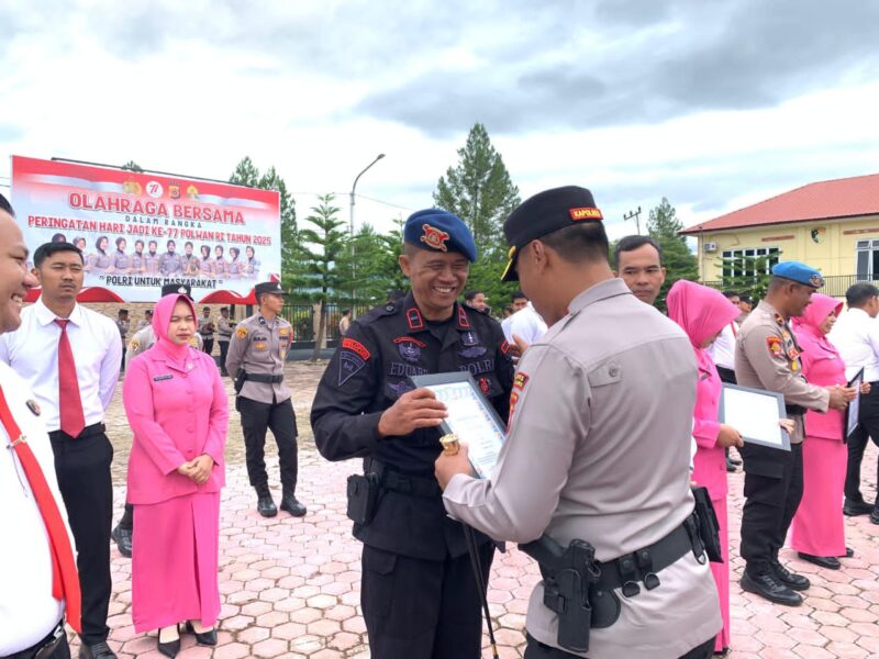 TLii | Aceh – Blangkejeren | 30 September 2025 – Kapolres Gayo Lues AKBP Hyrowo, S.I.K., memberikan penghargaan kepada sejumlah personel yang dinilai berprestasi dalam pelaksanaan tugas. Penyerahan penghargaan berlangsung di Halaman Apel Mapolres Gayo Lues usai apel pagi pada Senin (29/9/2025).