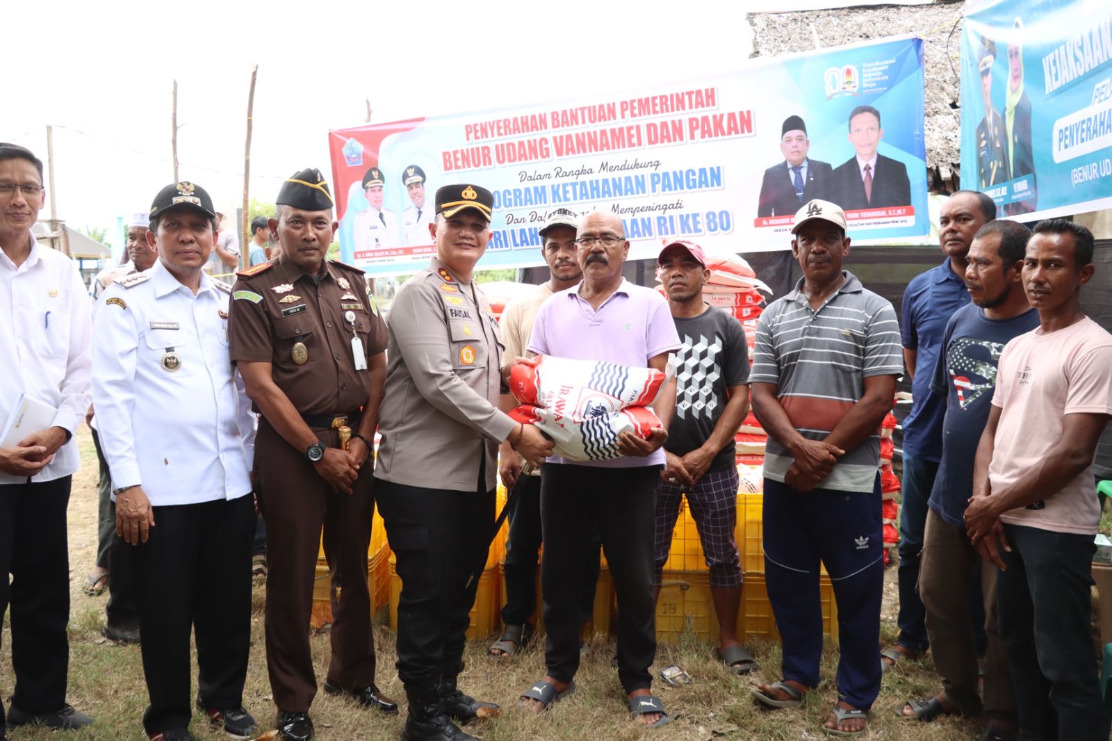 Bantuan yang diberikan meliputi 550.000 benih udang Vanamei, 1.500 kilogram pakan, 6 jirigen obat-obatan, 6 drum natural pengeras, dan 6 pak vitamin C. Bantuan ini diterima langsung oleh Ketua Kelompok Tani CIUSAHA, M. Yusuf Hasyem, dan dilanjutkan dengan penaburan benih secara simbolis oleh Forkopimda.