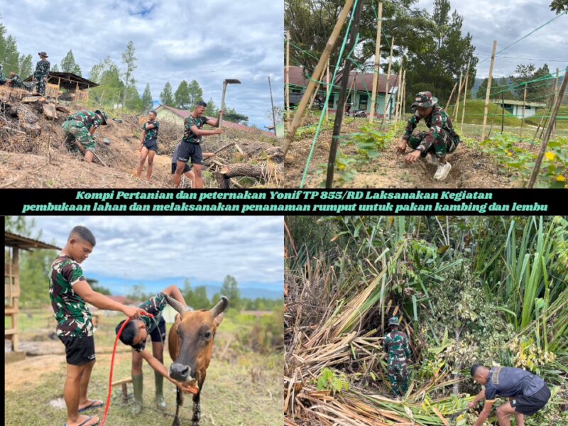 Kompi Pertanian dan peternakan Yonif TP 855/RD Laksanakan Kegiatan pembukaan lahan dan melaksanakan penanaman rumput untuk pakan kambing dan lembu