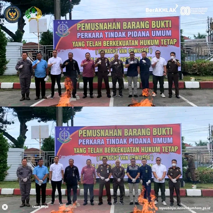 Lembaga Pemasyarakatan (Lapas) Kelas IIA Binjai, Wawan Irawan, menghadiri kegiatan pemusnahan barang bukti tindak pidana umum yang telah berkekuatan hukum tetap (inkracht). Kegiatan ini berlangsung di Kantor Kejaksaan Negeri (Kejari) Binjai.