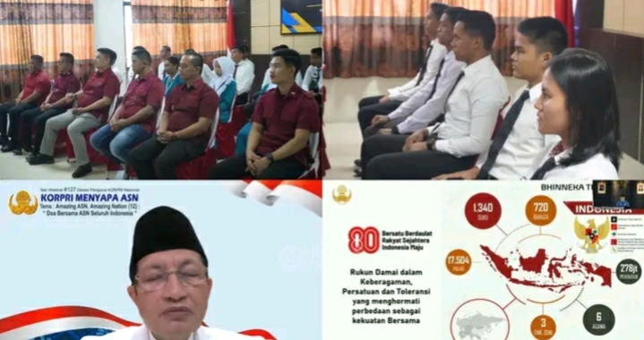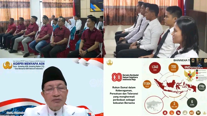 Doa bersama ini bukan hanya simbol spiritualitas, tetapi juga bukti nyata bahwa ASN hadir sebagai perekat bangsa. Dengan semangat KORPRI Maju Terus, kegiatan ini diharapkan menjadi energi positif bagi terwujudnya Indonesia yang damai, sejahtera, dan penuh harapan, Terangnya.
