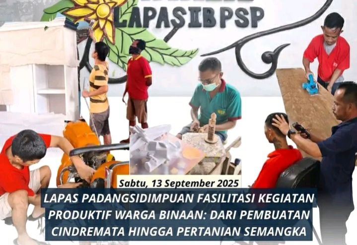 TIMELINES INEWS INVESTIGASI, Padangsidimpuan Lembaga Pemasyarakatan (Lapas) Kelas IIB Padangsidimpuan terus berkomitmen memberikan pembinaan kemandirian bagi warga binaan melalui berbagai program pelatihan yang kreatif dan produktif. Salah satunya adalah kegiatan pembinaan keterampilan yang dilaksanakan pada Sabtu (13/09/2025), meliputi pembuatan miniatur cinderamata, mebel, pangkas rambut, bengkel motor, hingga pertanian semangka.