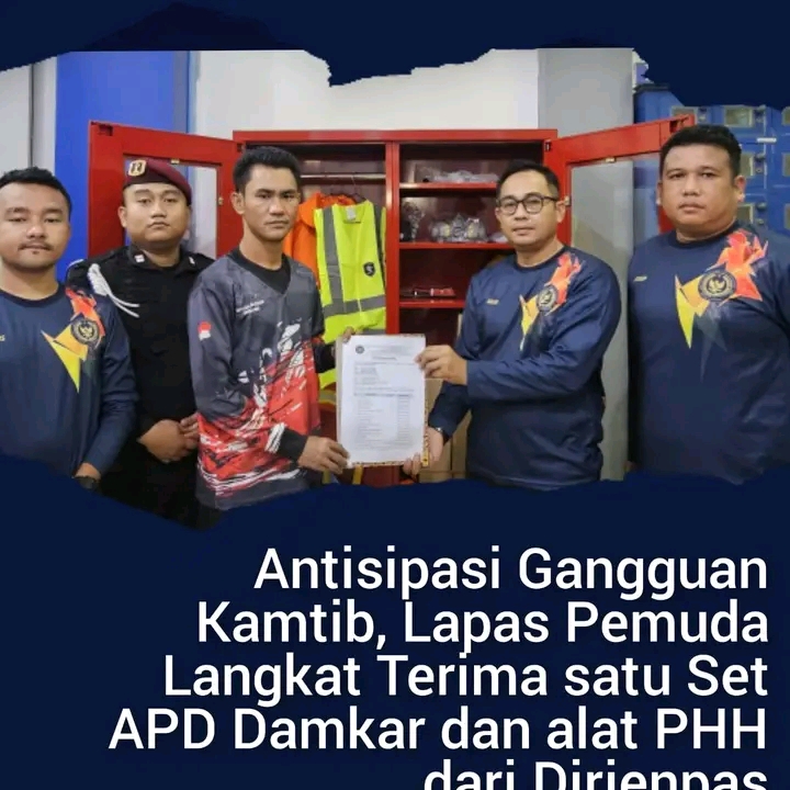 TIMELINES INEWS INVESTIGASI, Langkat 06 September 2025 Lapas Pemuda Langkat menerima tambahan sarana pengamanan berupa satu set Alat Pemadam Kebakaran (APAR) beserta satu lemari Alat Pelindung Diri (APD) dan 10 Set Alat Pengamanan Pasukan Huru Hara ( PHH ) dari Direktorat Jenderal Pemasyarakatan.