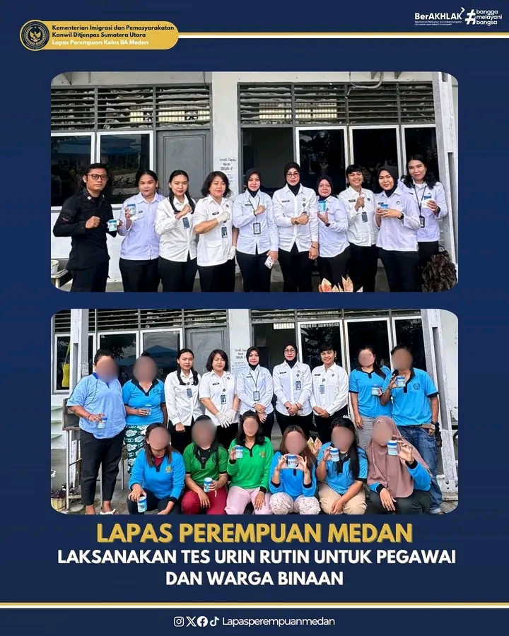 Kegiatan ini dilaksanakan secara berkala sebagai bagian dari komitmen Lapas Perempuan Medan dalam mendukung program Zero HALINAR (Handphone, Pungli, dan Narkoba), sekaligus menciptakan lingkungan kerja dan pembinaan yang sehat, bersih, dan bebas dari narkoba.