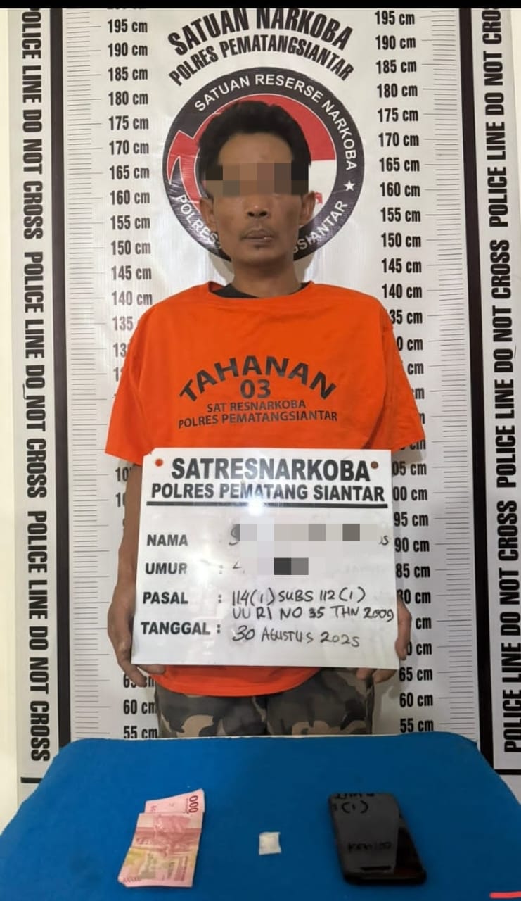 TLii|SUMUT|SIANTAR|Satuan Reserse Narkoba Polres Pematangsiantar menangkap S alias K (41) memiliki narkotika jenis sabu berat bruto 1,06 gram dirumahnya yang terletak di Jalan Setia Negara Sitio tio Kelurahan Setia Negara Kecamatan Siantar Sitalasari Kota Pematangsiantar, pada Sabtu 30 agustus 2025 malam sekira pukul 21.25 WIB.