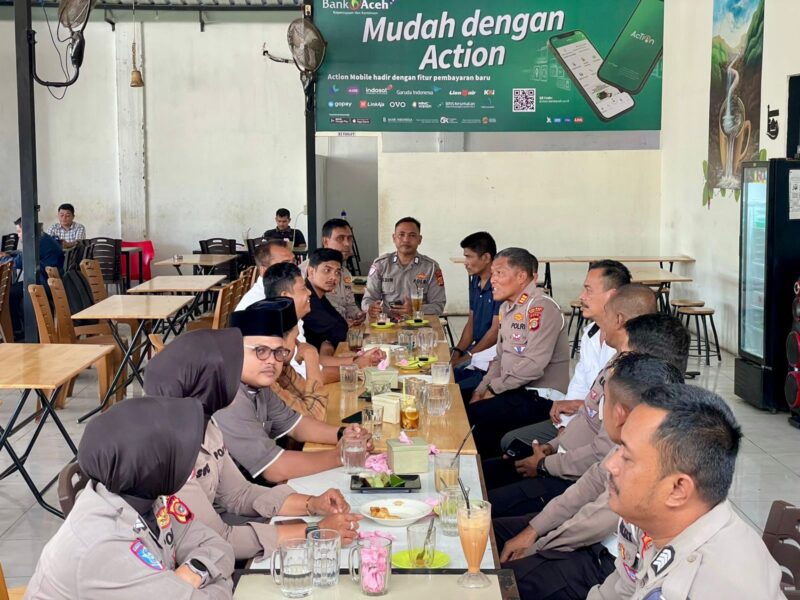 Kapolres Pidie Jaya, AKBP Ahmad Faisal Pasaribu, S.H., S.I.K., M.H., melalui Kasat Lantas, menyampaikan bahwa forum santai seperti ini menjadi sarana efektif untuk berdialog langsung dengan warga.
