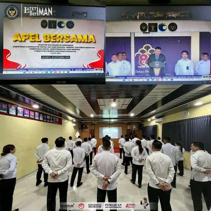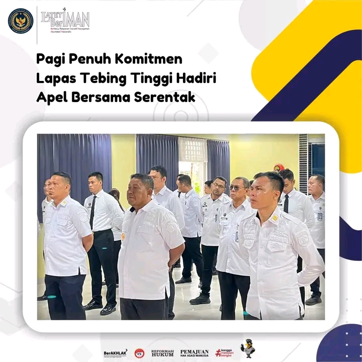 TIMELINES INEWS INVESTIGASI, Tebing Tinggi Lembaga Pemasyarakatan (Lapas) Kelas IIB Tebing Tinggi mengikuti Apel Bersama Pegawai di lingkungan Kementerian Koordinator Bidang Hukum, Hak Asasi Manusia, Imigrasi, dan Pemasyarakatan. Kegiatan ini dilaksanakan secara serentak pada Senin (15/9/2025) pukul 07.30 WIB melalui Zoom Meeting.