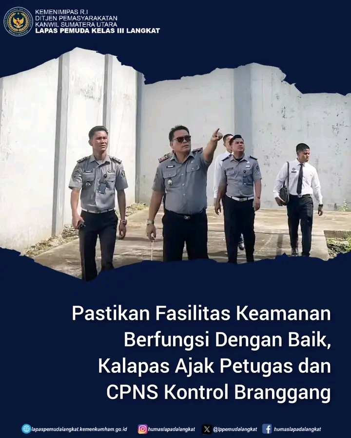 Kalapas Pemuda Langkat, Kenal Purba didampingi Kasubsi Kamtib, Hotler Krisman Pasaribu, Staf Kamtib dan CPNS melakukan inspeksi langsung ke sejumlah titik yang dianggap rawan, seperti area brandgang, tembok keliling dan teralis untuk memastikan tidak ada kerusakan atau celah yang dapat dimanfaatkan untuk pelarian, serta juga memeriksa gorong-gorong yang sering menjadi celah bagi upaya-upaya penyelundupan barang terlarang.