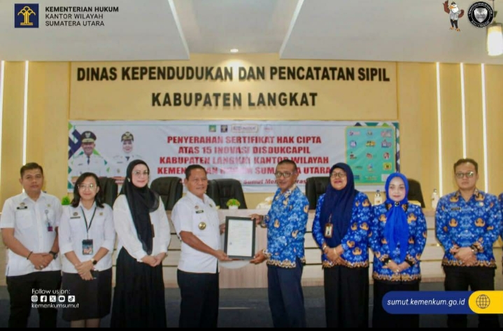 TIMELINES INEWS INVESTIGASI, Langkat Kantor Wilayah Kementerian Hukum dan HAM Sumatera Utara menghadiri kegiatan penyerahan 15 Surat Pencatatan Ciptaan yang diselenggarakan oleh Dinas Kependudukan dan Pencatatan Sipil (Disdukcapil) Kabupaten Langkat, Rabu (17/09/2025).