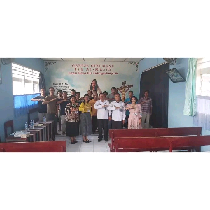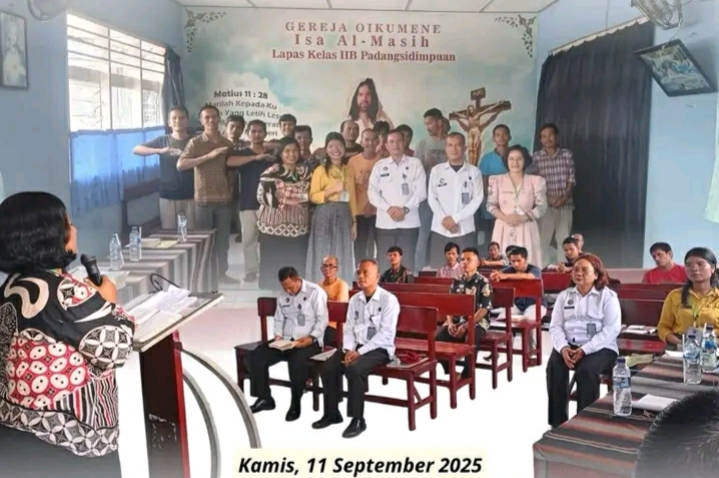 TIMELINES INEWS INVESTIGASI, Padangsidimpuan Suasana khidmat dan penuh kekhusyukan tampak di Gereja Lapas Kelas IIB Padangsidimpuan pada Kamis (11/09/2025) saat petugas dan warga binaan beragama Kristen mengikuti ibadah kebaktian bersama. Ibadah kali ini dipimpin langsung oleh penyuluh Bimbingan Masyarakat (Bimas) Kristen dari Kementerian Agama (Kemenag) Kota Padangsidimpuan.