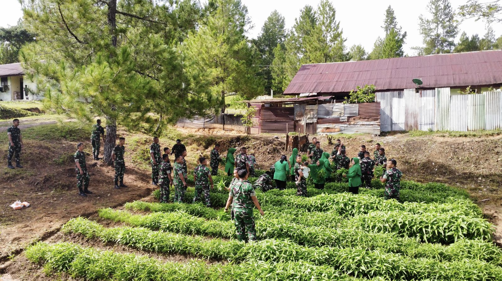 Kegiatan diawali dengan panen perdana tanaman kangkung yang telah dibudidayakan secara intensif. Dengan semangat gotong royong, personel dan anggota Persit secara bersama-sama memanen kangkung yang tumbuh subur dan hijau. Kangkung dipilih karena masa tanamnya yang singkat dan bernilai gizi tinggi, menjadikannya sumber sayuran yang ideal untuk menunjang kebutuhan konsumsi prajurit dan keluarga. Proses perawatan yang dilakukan secara organik juga menjamin hasil panen yang sehat dan aman dikonsumsi.
