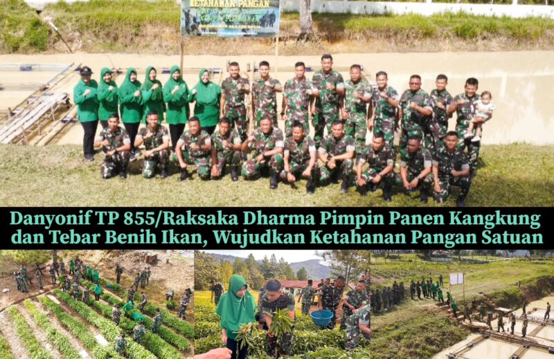TLii | Aceh | Blangkejeren, Gayo Lues – Pada Kamis (25/09/2025), seluruh jajaran perwira Yonif TP 855/Raksaka Dharma, dipimpin langsung oleh Komandan Batalyon Mayor Inf Irvan Nugraha Rodin, S.I.P., M.Tr.Mil., melaksanakan Ketahanan Pangan yaitu panen kangkung dan penebaran benih ikan. Kegiatan yang berlokasi di lahan pertanian satuanini turut dihadiri oleh Wadanyonif, para Perwira Staf, Danki, dan Persit Yonif TP 855/RD.