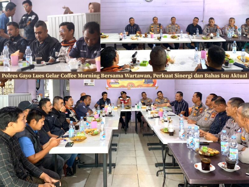 TLii | Aceh | Blangkejeren – Polres Gayo Lues menggelar kegiatan coffee morning bersama insan pers di Warung Sukma, Kota Blangkejeren, Selasa (30/9/2025). Acara ini dipimpin langsung Kapolres Gayo Lues AKBP Hyrowo, S.I.K., didampingi Wakapolres, para Kasat, dan sejumlah Kapolsek jajaran.