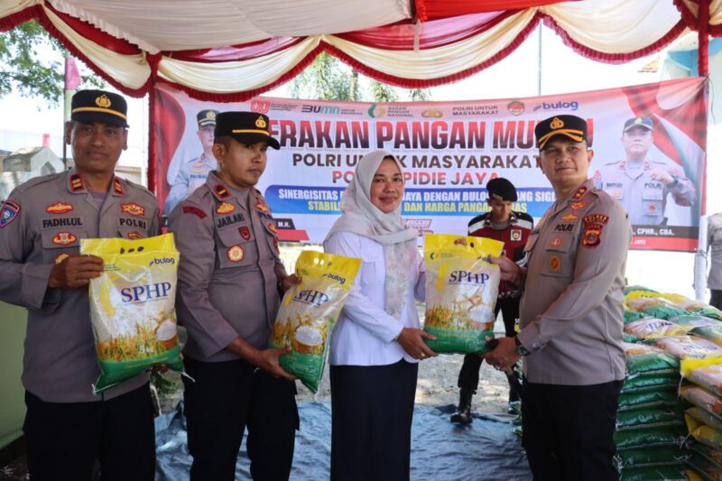 TLii. PIDIE JAYA – Dalam rangka menjaga stabilitas harga dan ketersediaan pangan, Polres Pidie Jaya bekerja sama dengan Perum Bulog menyalurkan beras Stabilisasi Pasokan dan Harga Pangan (SPHP) kepada masyarakat di delapan kecamatan di Kabupaten Pidie Jaya. Hingga saat ini, tercatat sebanyak 95,360 ton beras telah berhasil disalurkan.