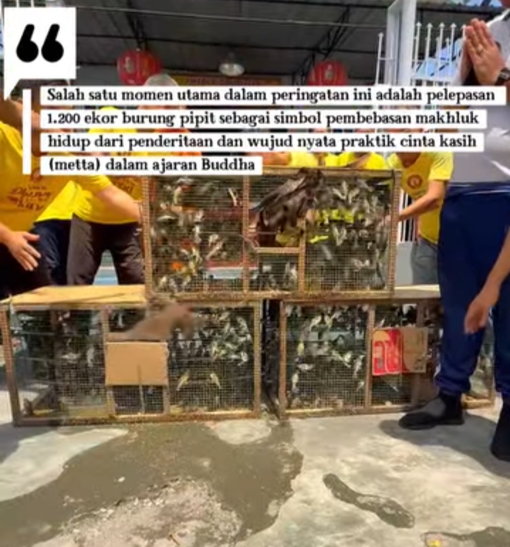 Sebagai puncak kegiatan, dilakukan pelepasan 1.200 ekor burung pipit di depan Vihara Rutan. Prosesi ini menjadi simbol pembebasan makhluk hidup dari penderitaan serta wujud nyata cinta kasih (Metta) dalam ajaran Buddha.