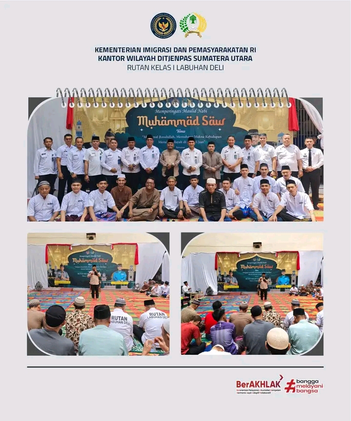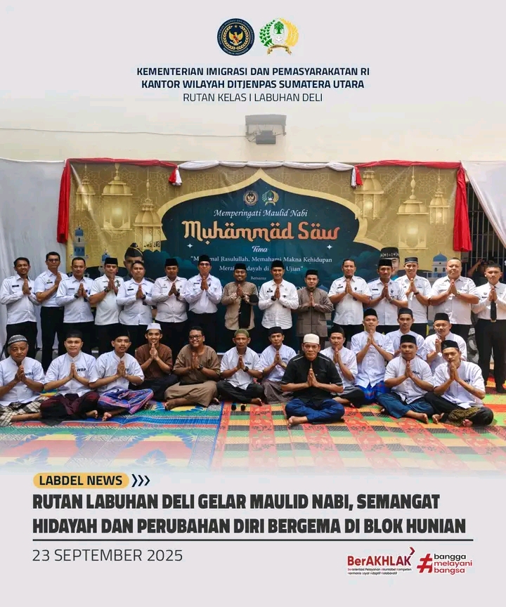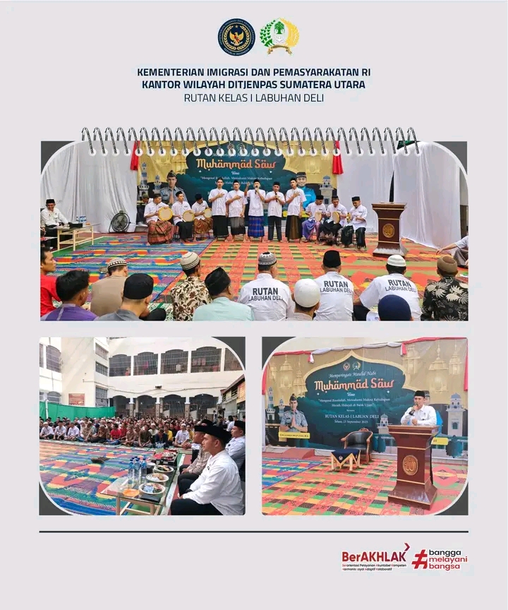TIMELINES INEWS INVESTIGASI, Acara dibuka secara resmi oleh Kepala Rutan Labuhan Deli, Eddy Junaedi. Dalam sambutannya, Karutan menyampaikan bahwa Maulid Nabi adalah momentum penting untuk merefleksikan kehidupan Rasulullah yang penuh dengan keteladanan. “Rasulullah SAW adalah figur yang sempurna. Dari beliau kita belajar arti kesabaran, keikhlasan, dan perjuangan. Saya berharap seluruh warga binaan dapat menjadikan peringatan ini sebagai titik balik untuk memperbaiki diri dan kembali ke jalan yang diridhai Allah SWT,” ujar Eddy Junaedi dengan penuh semangat.