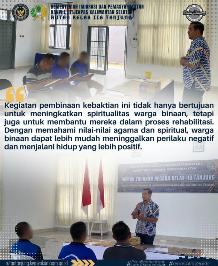 berkomitmen menghadirkan pembinaan rohani bagi warga binaan sebagai bagian dari proses pembinaan kepribadian. Hal ini diwujudkan melalui kegiatan ibadah kebaktian rutin yang digelar setiap hari Sabtu bekerja sama dengan Gereja Pantekosta di Indonesia (GPdI) Kembang Kuning, Kecamatan Haruai.