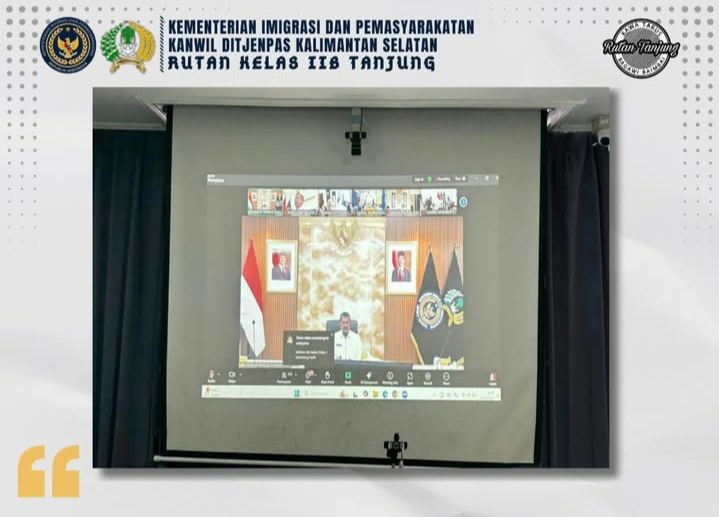 Rutan Tanjung, 04 September 2025 Rumah Tahanan Negara (Rutan) Kelas IIB Tanjung mengikuti pengarahan yang disampaikan langsung oleh Direktur Jenderal Pemasyarakatan (Dirjenpas), Drs. Mashudi, melalui Zoom Meeting pada Kamis (04/09). Kegiatan ini diikuti oleh Kepala Rutan, pejabat struktural, staf, serta CPNS bertempat di ruang Zoom Rutan Kelas IIB Tanjung.