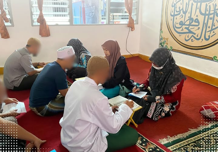 Kegiatan ini difokuskan pada pembenahan bacaan makhraj huruf dan hukum tajwid, dengan suasana khusyuk yang mewarnai jalannya pembelajaran setiap pekannya.