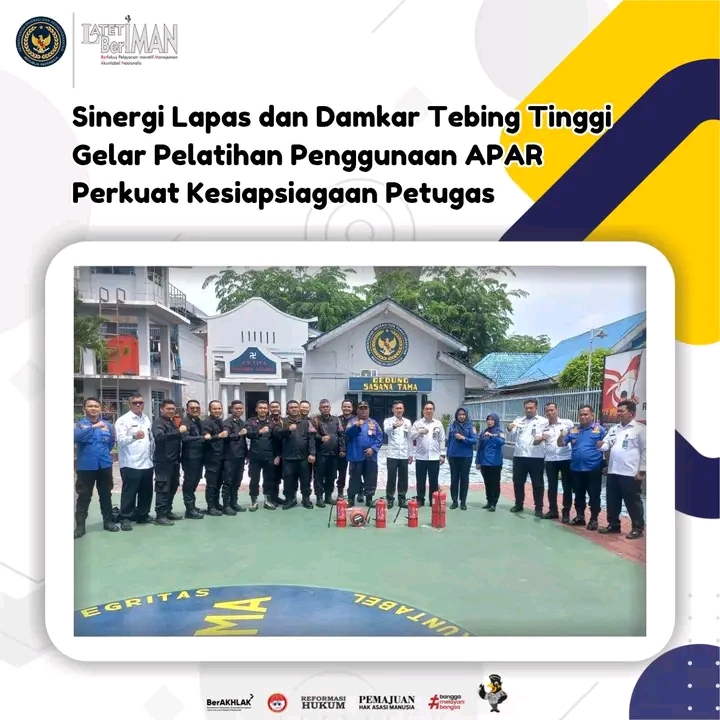 TIMELINES INEWS INVESTIGASI, Tebing Tinggi Dalam upaya meningkatkan kesiapsiagaan dan kemampuan personel dalam menghadapi situasi darurat kebakaran, Lembaga Pemasyarakatan (Lapas) Kelas IIB Tebing Tinggi menggelar pelatihan penggunaan Alat Pemadam Api Ringan (APAR) yang bekerja sama dengan Dinas Pemadam Kebakaran dan Penyelamatan Kota Tebing Tinggi, Senin (8/9/2025).