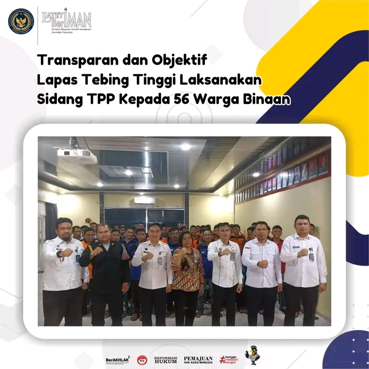 TIMELINES INEWS INVESTIGASI, Tebing Tinggi Lapas Kelas IIB Tebing Tinggi melaksanakan sidang Tim Pengamat Pemasyarakatan (TPP) terhadap 56 orang Warga Binaan Pemasyarakatan (WBP), Kamis, 11 September 2025. Sidang ini dipimpin langsung oleh Kepala Seksi Administrasi Keamanan dan Ketertiban, Freddy R. Siregar, bersama Kepala Kesatuan Pengamanan Lapas, Rudy B. Purba.