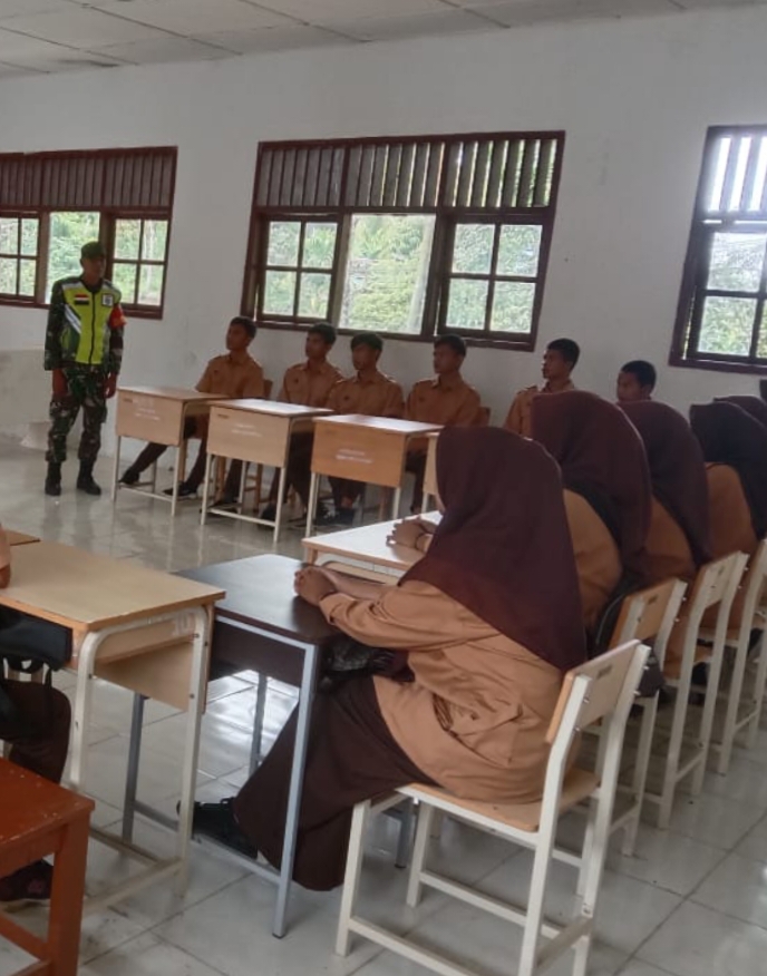 TLii | Aceh – Babinsa Koramil 09/putri betung,kodim 0113/Gayo lues Serda Sahir,S meberikan wawasan kebangsaan (Wasbang) kepada siswa & siswi SMA Negeri 1 Putri Betung sebagai salah satu pembinaan Bela Negara dan melatih jiwa korsa serta rasa Nasionalisme kepada anak-anak, Sabtu,20 September 2025