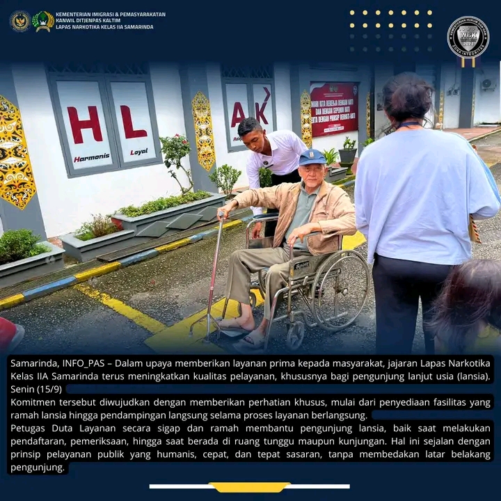 TIMELINES INEWS INVESTIGASI, Samarinda, Dalam upaya memberikan layanan prima kepada masyarakat, jajaran Lapas Narkotika Kelas IIA Samarinda terus meningkatkan kualitas pelayanan, khususnya bagi pengunjung lanjut usia (lansia). Senin (15/9)