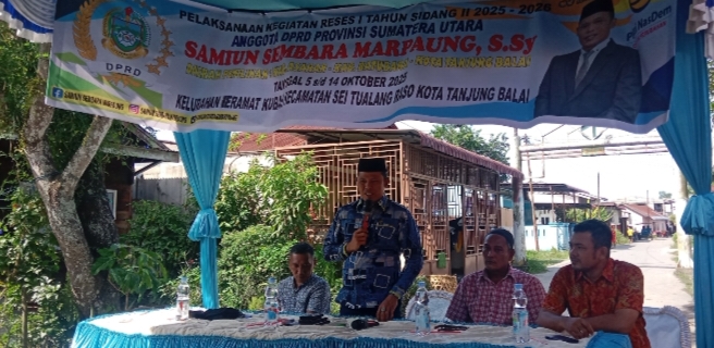 Tanjungbalai — Anggota DPRD Provinsi Sumatera Utara Samiun Sembara Marpaung, S.Sy melaksanakan kegiatan Reses I Tahun Sidang II 2025–2026 di Jalan Lobe Daud, Kelurahan Keramat Kubah, Kecamatan Sei Tualang Raso, Kota Tanjungbalai, Kamis (09/10/2025)