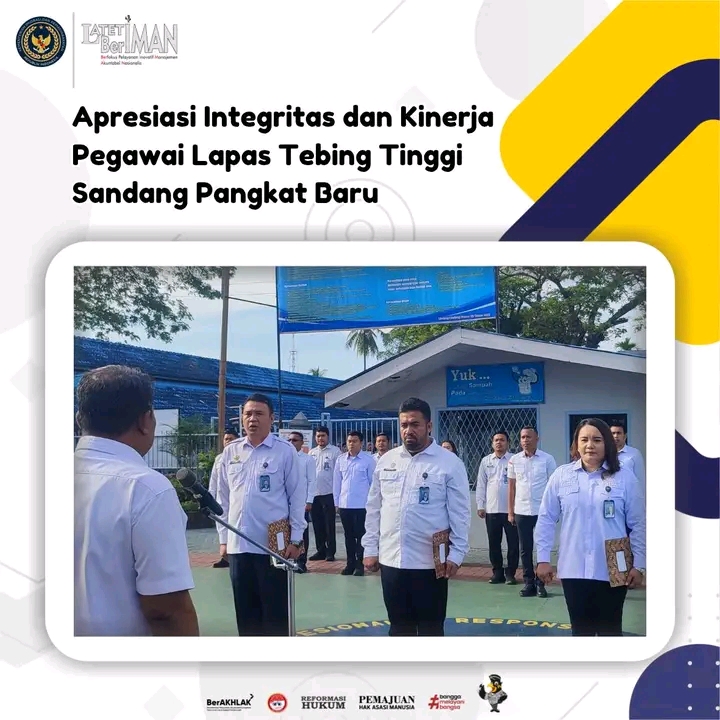 Apel berlangsung khidmat dan sederhana, namun penuh makna. Kenaikan pangkat menjadi bagian dari pembinaan karier ASN yang dilaksanakan secara berkala sesuai ketentuan perundang-undangan. Hal ini juga menjadi wujud nyata komitmen Lapas Tebing Tinggi dalam mendorong peningkatan kualitas sumber daya manusia di lingkungan pemasyarakatan, Pungkasnya.