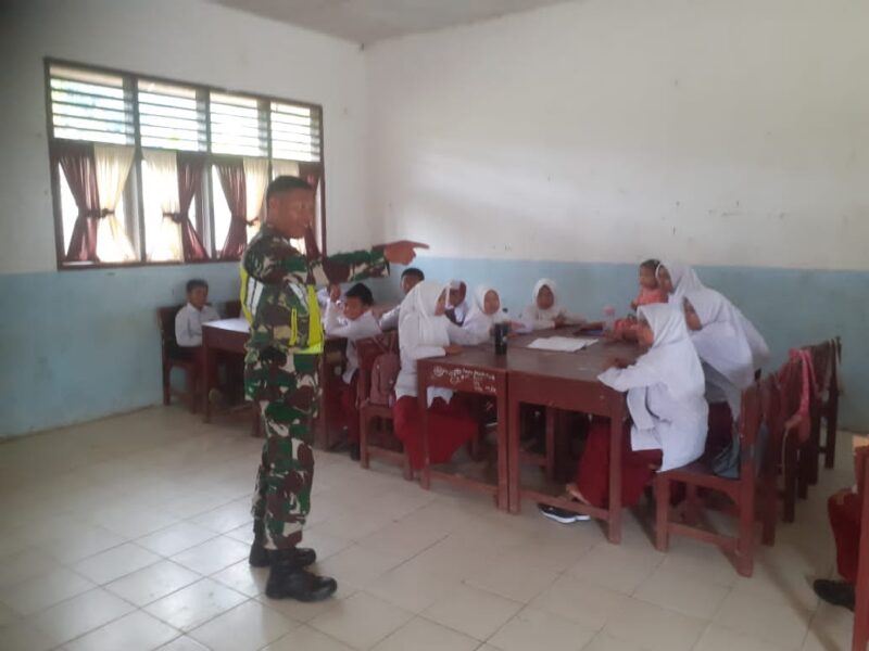 TLii | Aceh | Gayo Lues – Serda Rano Karno Babinsa Koramil 09/Putri Betung Kodim 0113/Gayo Lues memberikan penyuluhan kepada siswa-siswi SDN 3 Uning Pune, Kecamatan Putri Betung, kabupaten Gayo Lues provinsi Aceh, Senin (13/10/2025).