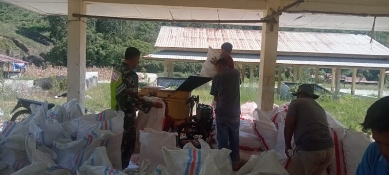 TLii | Aceh | Kodim 0113/Gayo lues – Babinsa Koramil 09/Putri Betung Serda Rudi wibowo Sabtu [25/10/2025]. melaksanakan pendampingan ketahanan pangan (Hanpangan) bersama petani dalam kegiatan membantu warga merontok Jagung yang berlokasi di Desa Meloak kecamatan Putri Betung kab.Gayo lues .