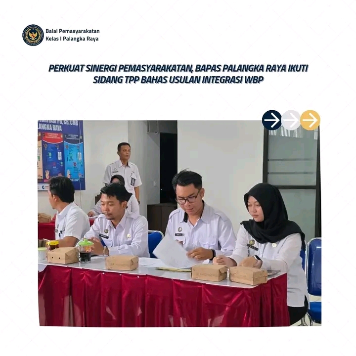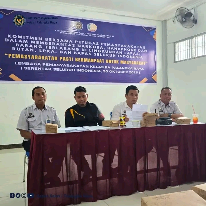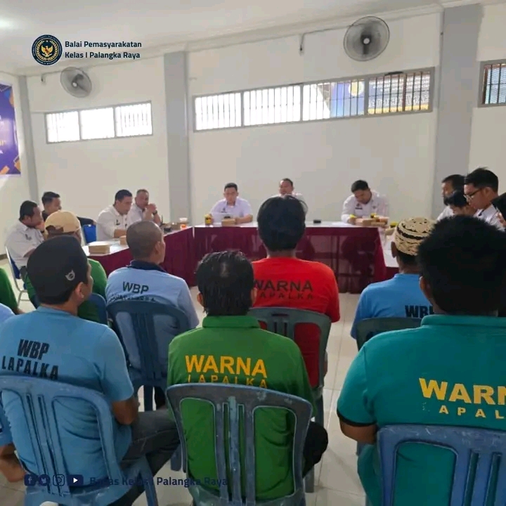 Pemasyarakatan (Lapas) Kelas IIA Palangka Raya, Rabu (22/10). Kehadiran perwakilan Bapas ini menjadi bentuk nyata sinergi antar Unit Pelaksana Teknis (UPT) Pemasyarakatan dalam mendukung proses pembinaan dan penilaian usulan program integrasi bagi Warga Binaan Pemasyarakatan (WBP).