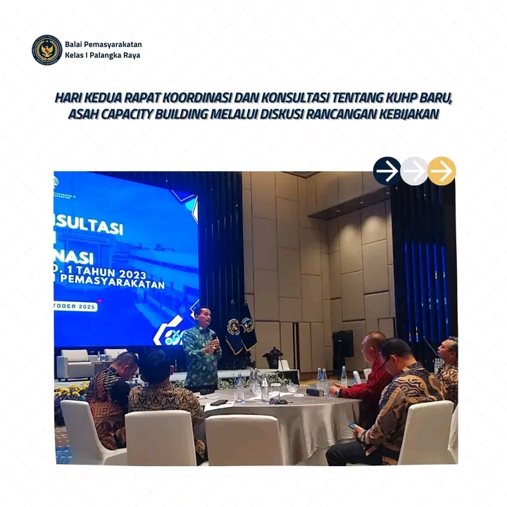 TIMELINES INEWS INVESTIGASI, Jakarta, 16 Oktober 2025 Memasuki hari kedua pelaksanaan Rapat Koordinasi dan Konsultasi Implementasi KUHP Baru, Balai Pemasyarakatan (Bapas) Palangka Raya berpartisipasi aktif dalam kegiatan diskusi kelompok yang bertujuan untuk mengasah capacity building terkait rancangan kebijakan di lingkungan Pemasyarakatan.