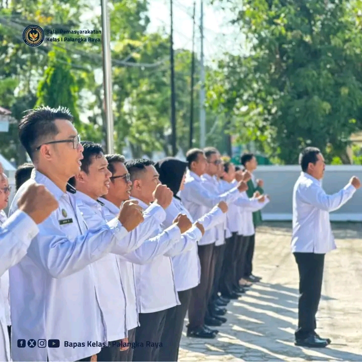 TIMELINES INEWS INVESTIGASI, Palangka Raya, 13 Oktober 2025 Balai Pemasyarakatan (Bapas) Kelas I Palangka Raya menggelar apel pagi rutin di halaman kantor Bapas Palangka Raya. Kegiatan ini diikuti oleh seluruh pegawai dan dipimpin langsung oleh Kepala Bapas Palangka Raya, Theo Adrianus.