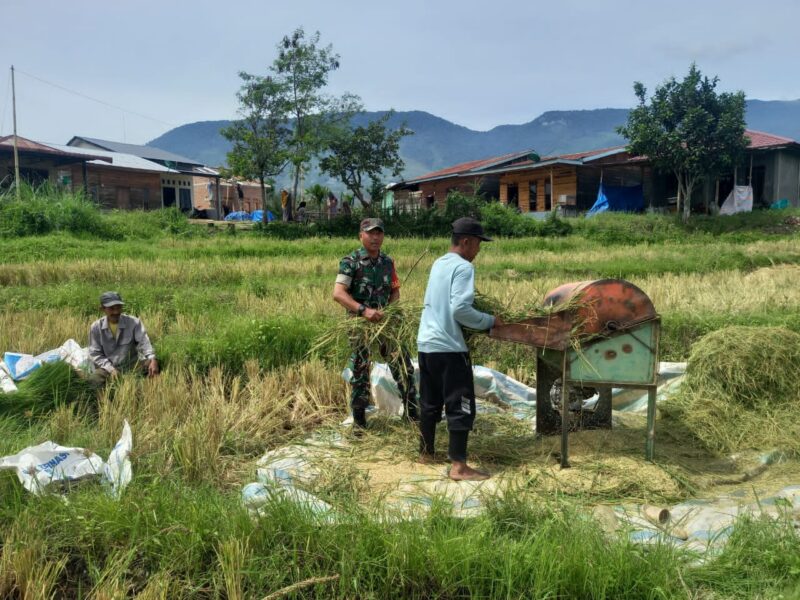 TLii | Aceh | GAYO LUES – Babinsa Posramil Dabungelang Koramil 03/ Blangkejeren Kodim 0113/ Gayo Lues, Serma Sukino melaksanakan pendampingan Han pangan dalam kegiatan panen Padi milik Bapak Amran dengan luas lahan sekitar 0,5 Ha yang terletak di Desa Panglime linting Kecamatan Dabungelang ,Kabupaten Gayo Lues. Kamis (16/10/2025)