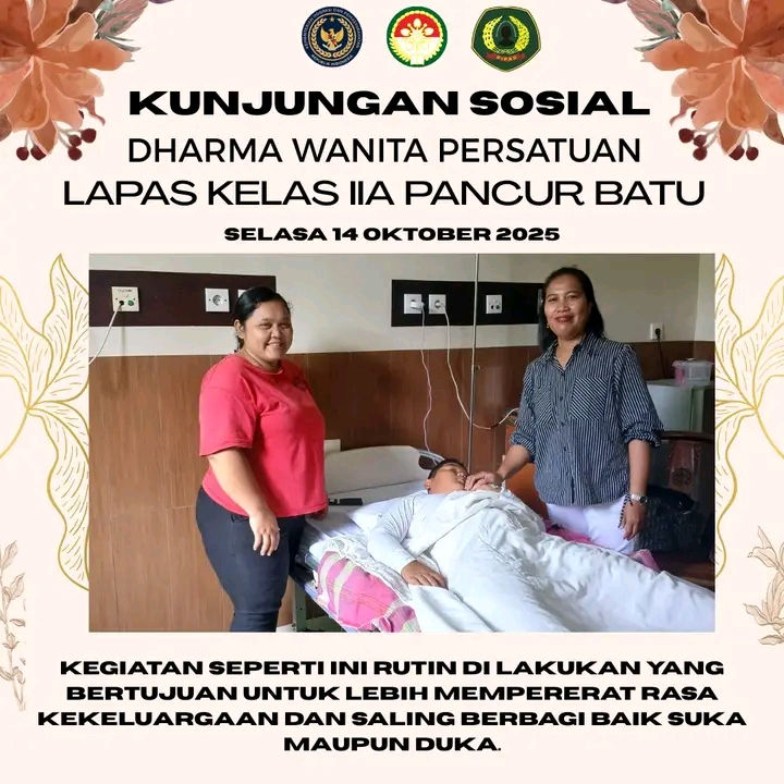 TIMELINES INEWS INVESTIGASI, Medan, Selasa 14 Oktober 2025 Bidang Sosial dan Budaya Dharma Wanita Persatuan (DWP) Lembaga Pemasyarakatan (Lapas) Kelas IIA Pancur Batu kembali menunjukkan kepedulian dan rasa kekeluargaan melalui kegiatan Kunjungan Kasih.