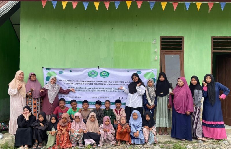 Karang Baru – Suasana ceria dan penuh tawa terdengar di salah satu ruang belajar anak-anak di Kecamatan Tamiang Hulu. Hari itu, Minggu 26 Oktober 2025, PIK-M Syifaul Qulub Fakultas Ushuluddin, Adab, dan Dakwah (FUAD) IAIN Langsa bersama HMJ Bimbingan dan Konseling Islam (BKI) menghadirkan kegiatan edukatif bertema “Pencegahan Pelecehan Seksual pada Anak”.