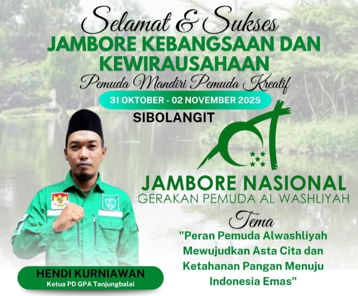Tanjungbalai – Gerakan Pemuda Al Washliyah (GPA) Tanjungbalai turut serta dalam Jambore Kebangsaan dan Kewirausahaan yang diselenggarakan oleh Pimpinan Pusat GPA. Acara nasional ini akan berlangsung dari tanggal 31 Oktober hingga 2 November 2025 di Sibolangit, Kabupaten Deli Serdang Sumatera Utara.(30/10/25)