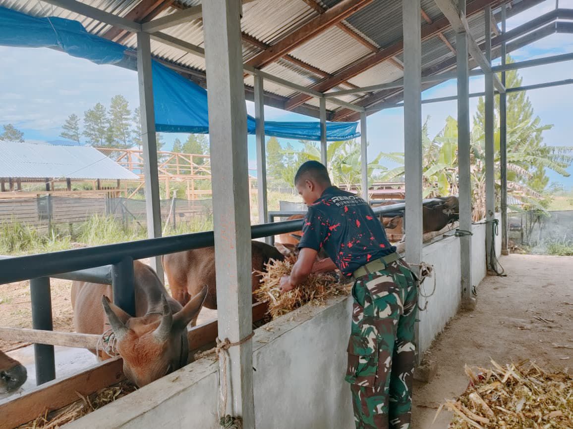 Selain fokus pada pertanian, satuan juga memprioritaskan keberlanjutan sektor peternakan. Para prajurit secara intensif melaksanakan pembersihan dan perbaikan kandang ternak yang meliputi sapi, kambing, dan domba. Kegiatan ini mencakup gotong royong membersihkan sisa pakan dan kotoran, mengganti alas jerami lama, serta memperbaiki bagian kandang yang mengalami kerusakan.