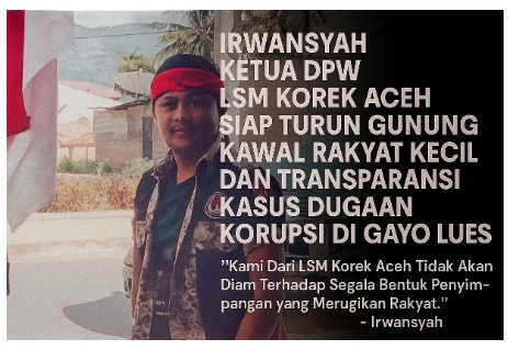 > “Kami dari LSM Korek Aceh tidak akan berdiam diri jika ada indikasi penyimpangan yang berpotensi merugikan rakyat kecil. Kami akan turun langsung, mengawal, dan mendesak agar setiap proses hukum dilakukan secara transparan, objektif, dan tanpa intervensi,” tegas Irwansyah.